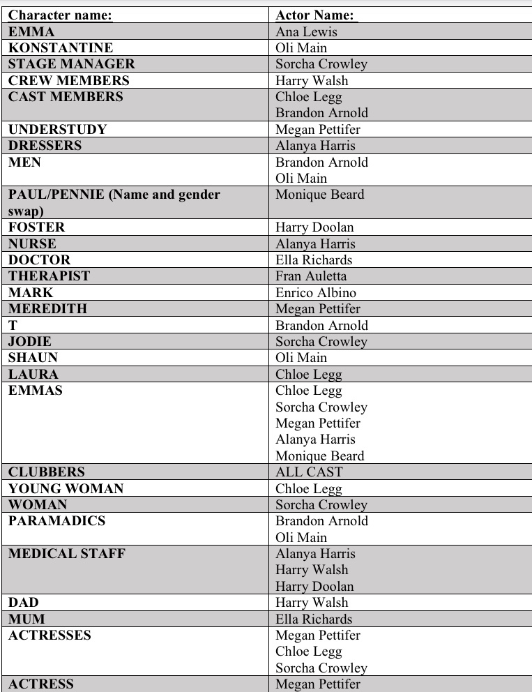 As you can see I’m quite involved in this piece, since I was casted as the stage manager meaning I get to take Emma on stage first after she had fallen while performing ‘The Seagull’ in the very first scene.